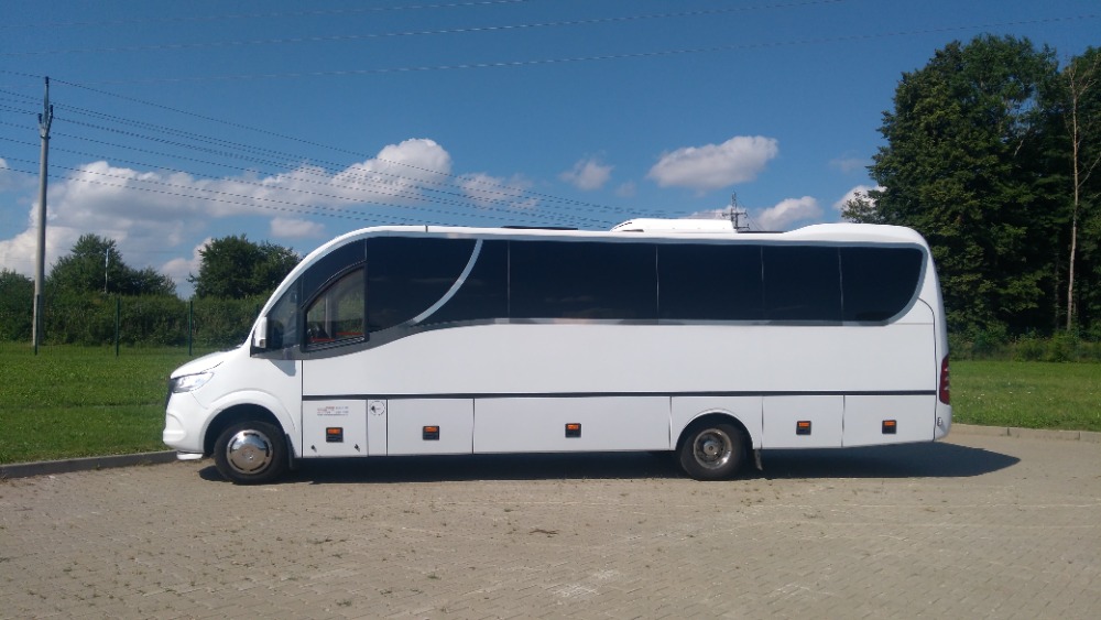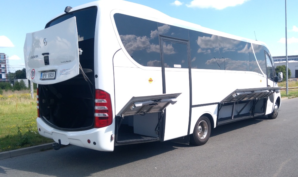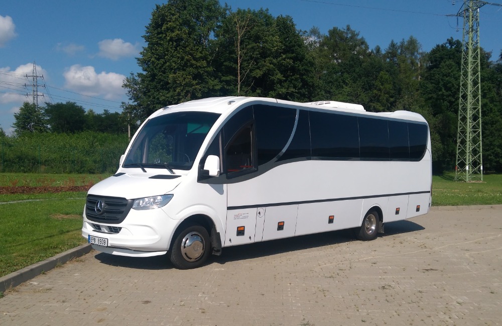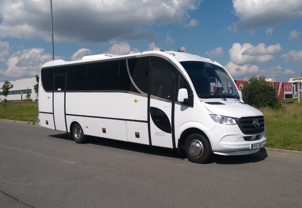 Náš úplně nový minibus Mercedes - Benz, Sprinter nabízí kapacitu 30 míst, velký úložný prostor a komfortní interiér vhodný pro dlouhé cesty. Rok výroby je 2021. Počet míst 30 Výbava Audio DVD přehrávač Klimatizace Lednice Mikrofon Vlek
